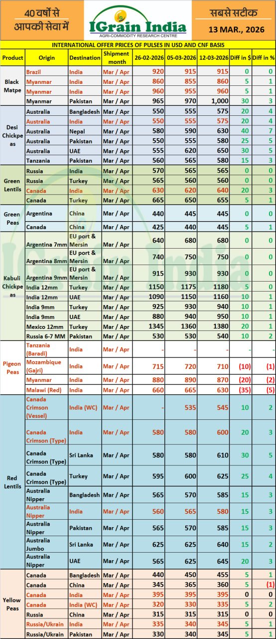 - कनाडा से मसूर तथा मटर का निर्यात गत वर्ष से पीछे