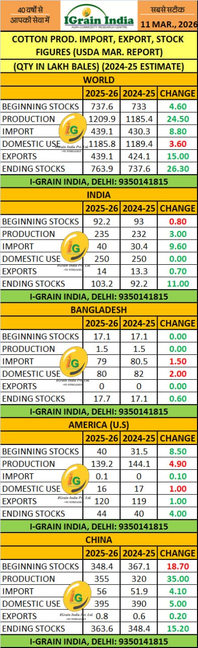 COTTON: WASDE MARCH 2026 REPORT