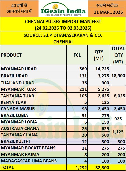 CHENNAI PULSES IMPORT MANIFEST