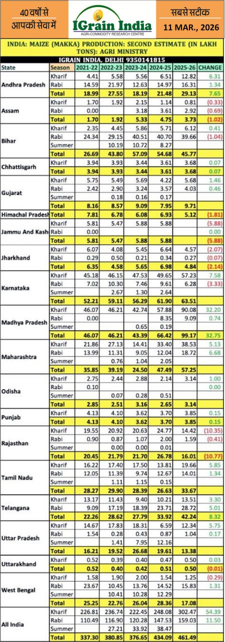 INDIA MAIZE PRODUCTION SECOND ESTIMATE
