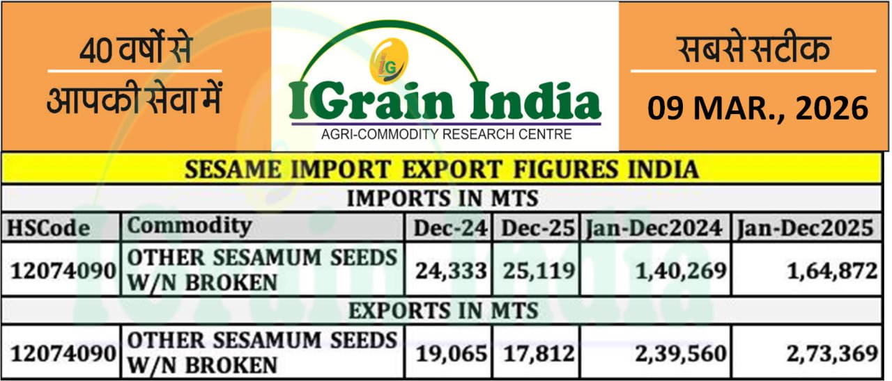 News Capsule/न्यूज कैप्सूल: भारत: तिल के आयात निर्यात में बढ़ोतरी