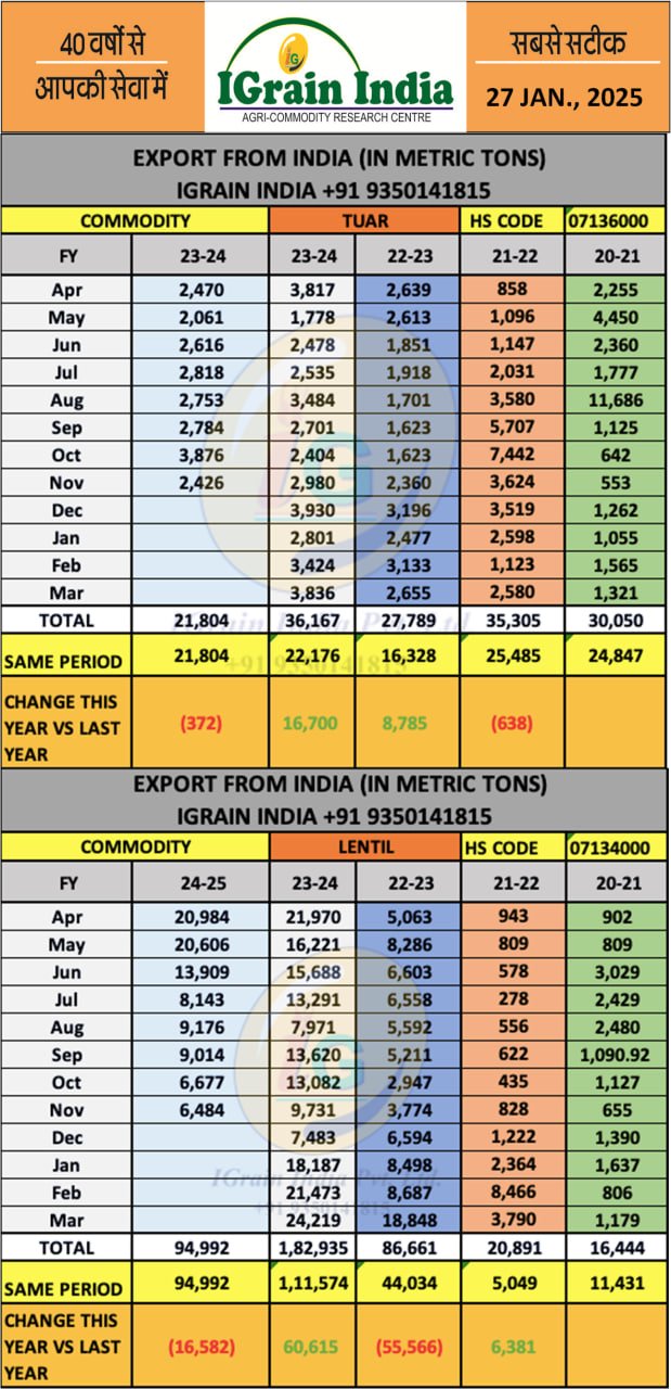 LOBIA RAJMA EXPORT FIGURES