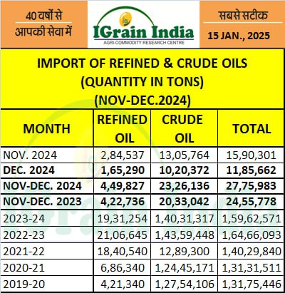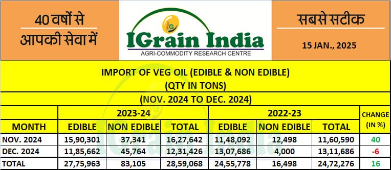 IMPORT OF VEG OIL (EDIBLE & NON EDIBLE)
