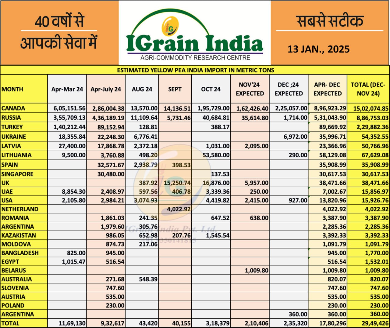 ESTIMATED YELLOW PEA IMPORT 13.01
