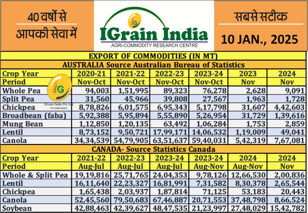 INTERNATIONAL PRICES OF PULSES 09.01.2025