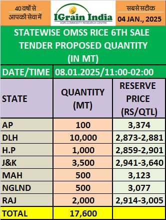 STATEWISE OMSS RICE 6TH SALE TENDER LIST 08.01.2025