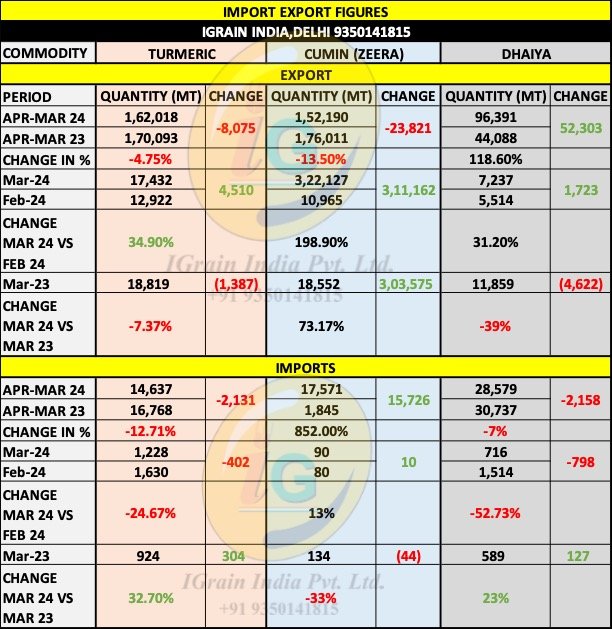IMPORT EXPORT FIGURES: SPICES