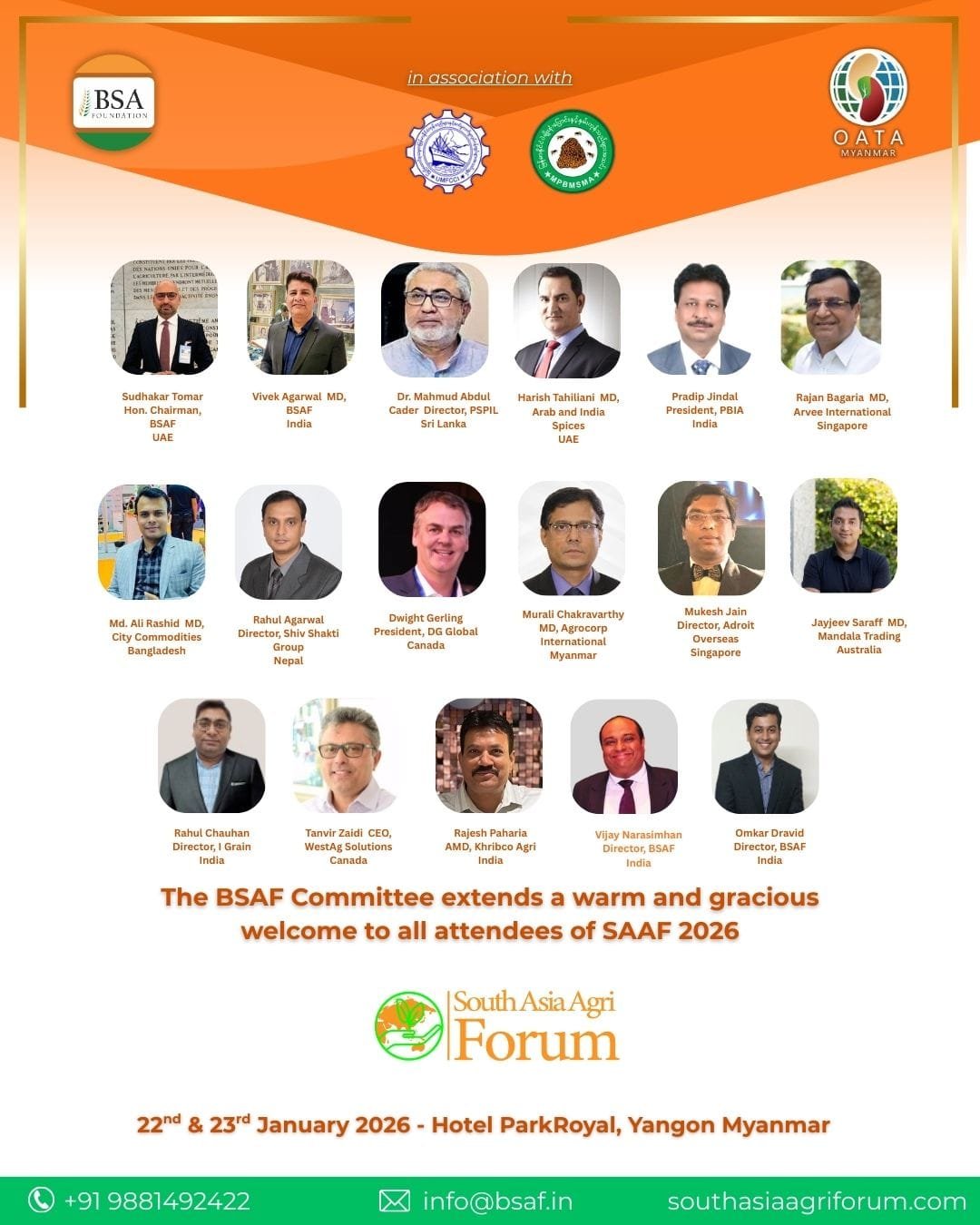 BSAF’s Fourth South Asia Agri Forum to Be Held on January 22–23 in Yangon