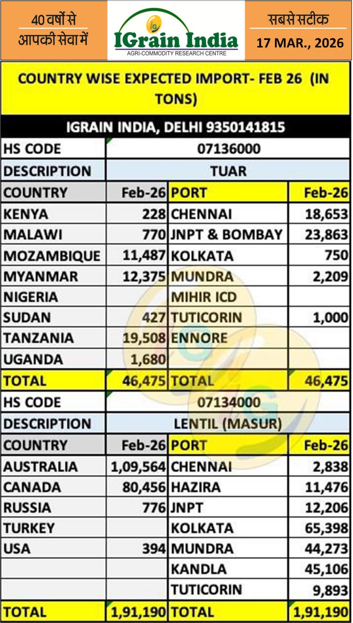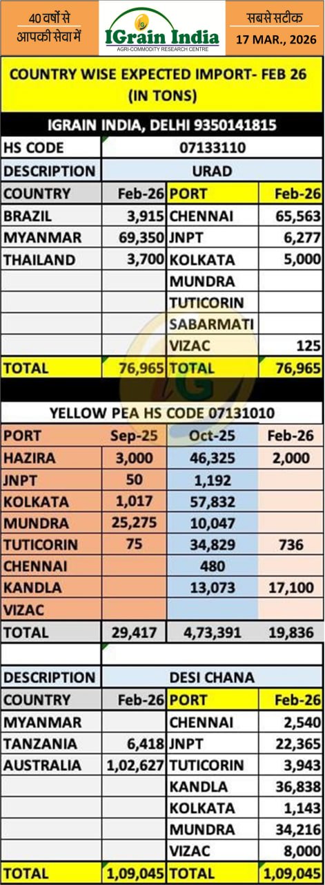 CHANA/MATAR/URAD COUNTRYWISE IMPORT DATA