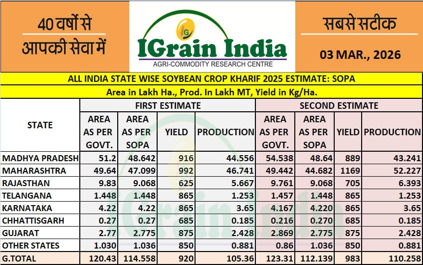 ALL INDIA STATE WISE SOYBEAN CROP KHARIF 2025 ESTIMATE: SOPA