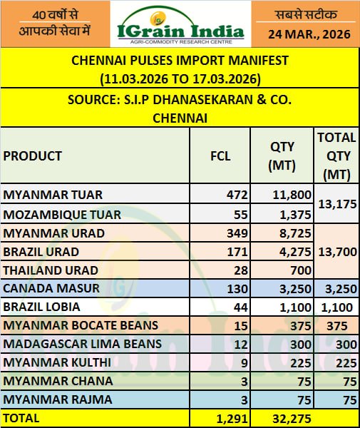 CHENNAI PULSES IMPORT MANIFEST