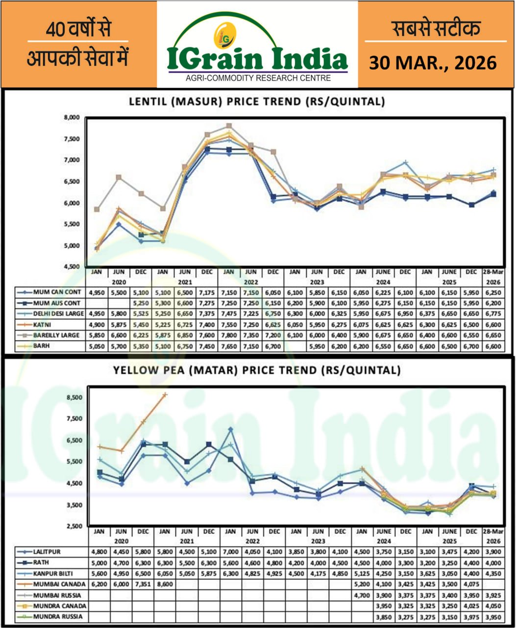 प्रमुख उत्पादक देशों से आपूर्ति बढ़ने के कारण मटर का भाव स्थिर