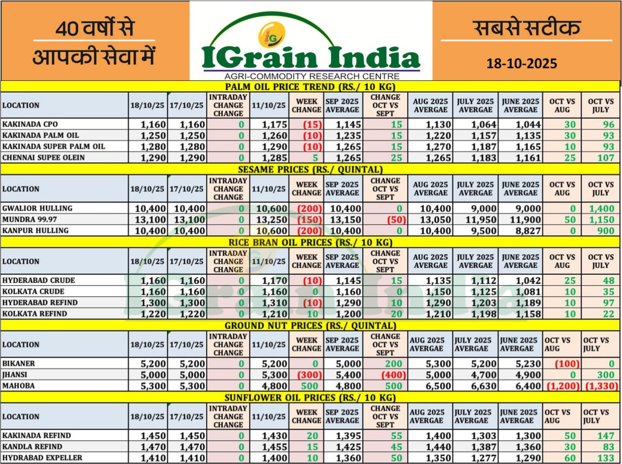 Sunflower Refined IN Rs./ 10 KG
