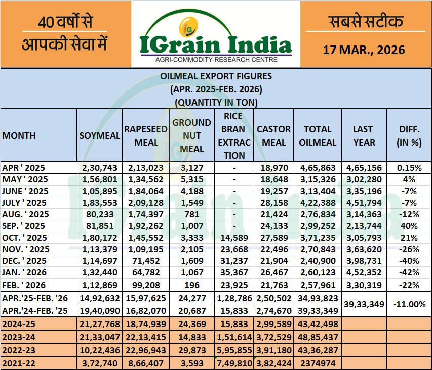 OILMEAL EXPORT FIGURES