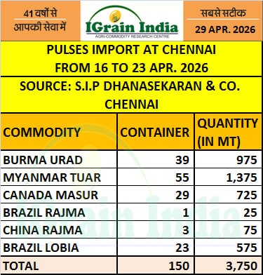 PULSES IMPORT AT CHENNAI