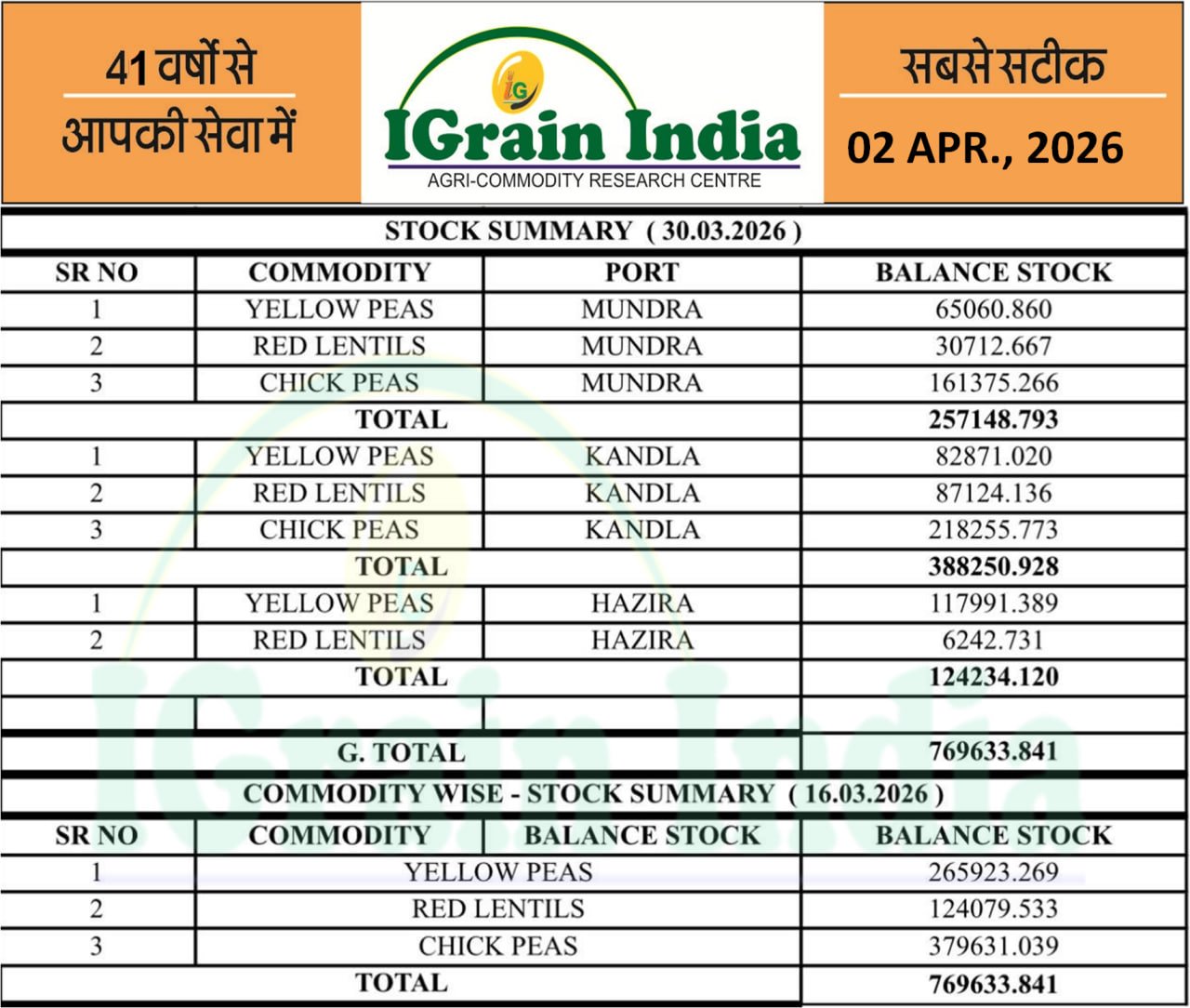 PULSES STOCK AT DIFFERENT PORTS
