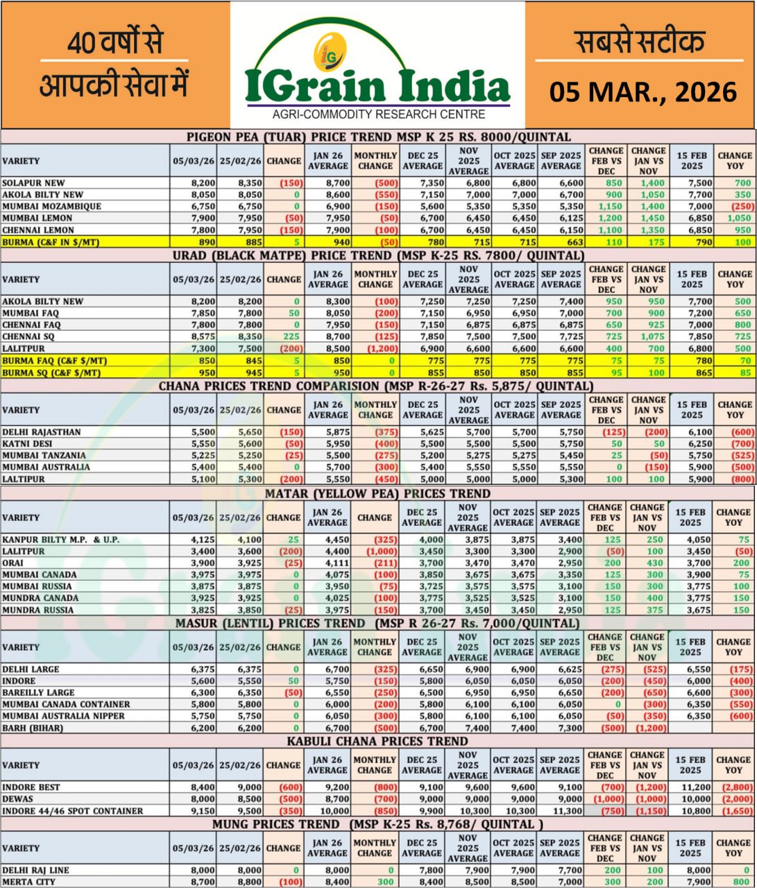 PULSES PRICE TREND