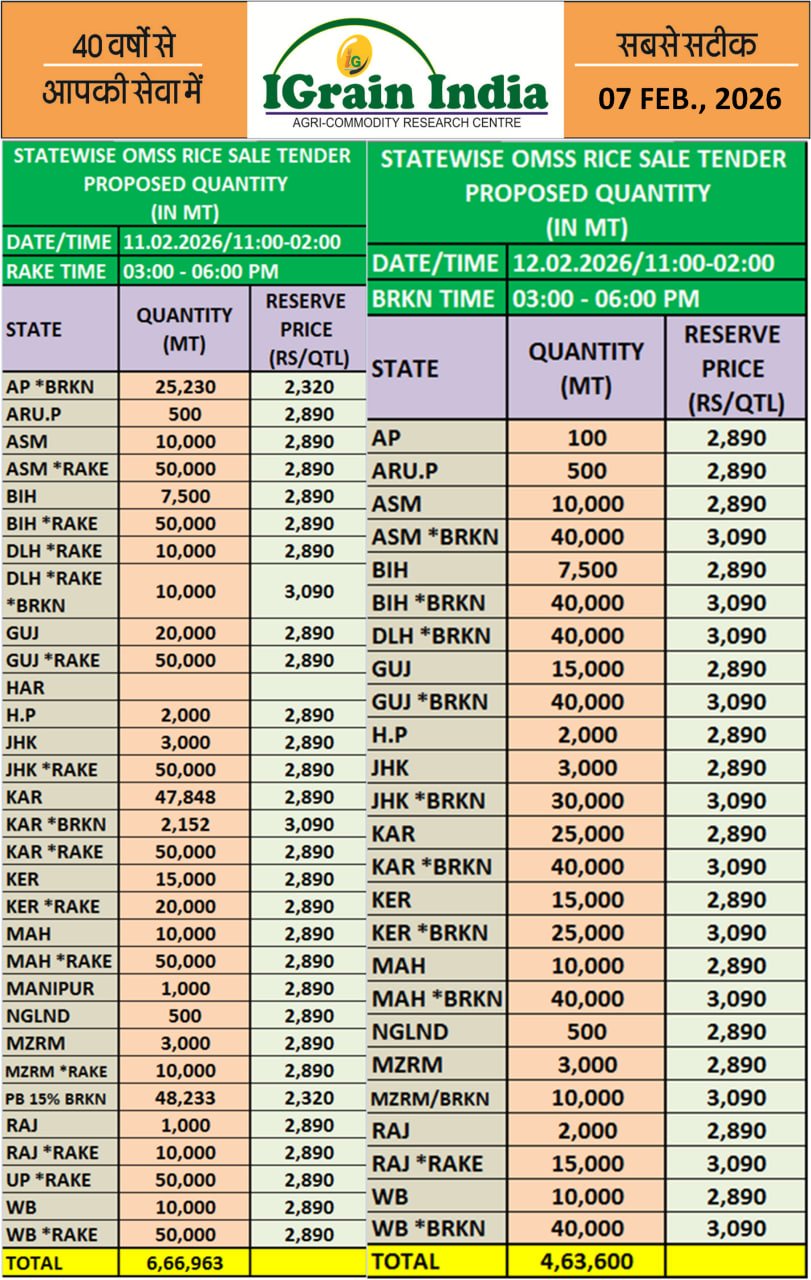 STATEWISE OMSS RICE SALE TENDER PROPOSED QUANTITY
