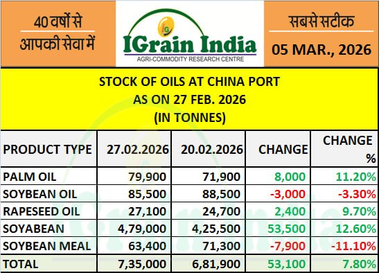 STOCK OF OILS AT CHINA PORT
