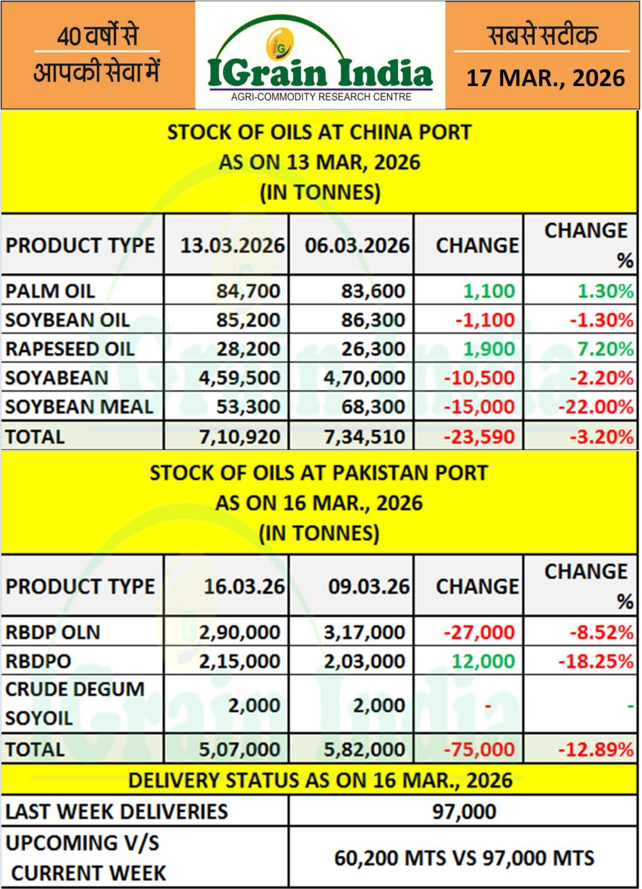 STOCK OF OILS AT PORT