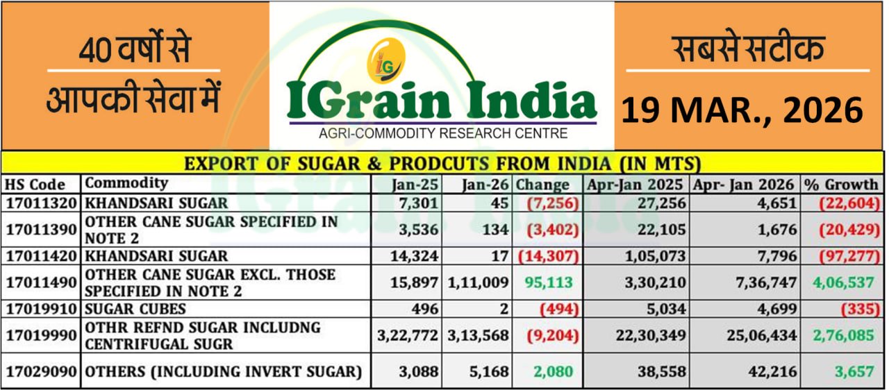 • चीनी दैनिक समीक्षा: मार्च में कम कोटा के बावजूद चीनी कीमतों में गिरावट