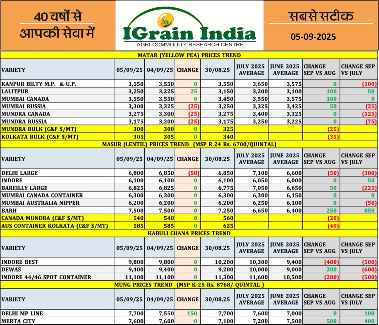 PULSES PRICE TREND