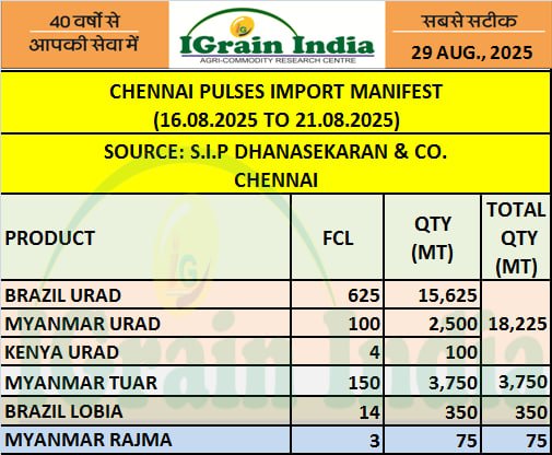 CHENNAI PULSES IMPORT MANIFEST