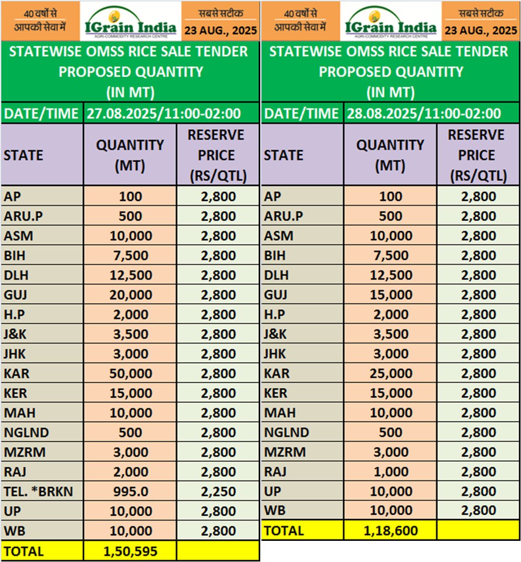 STATEWISE OMSS RICE SALE TENDER PROPOSED QUANTITY