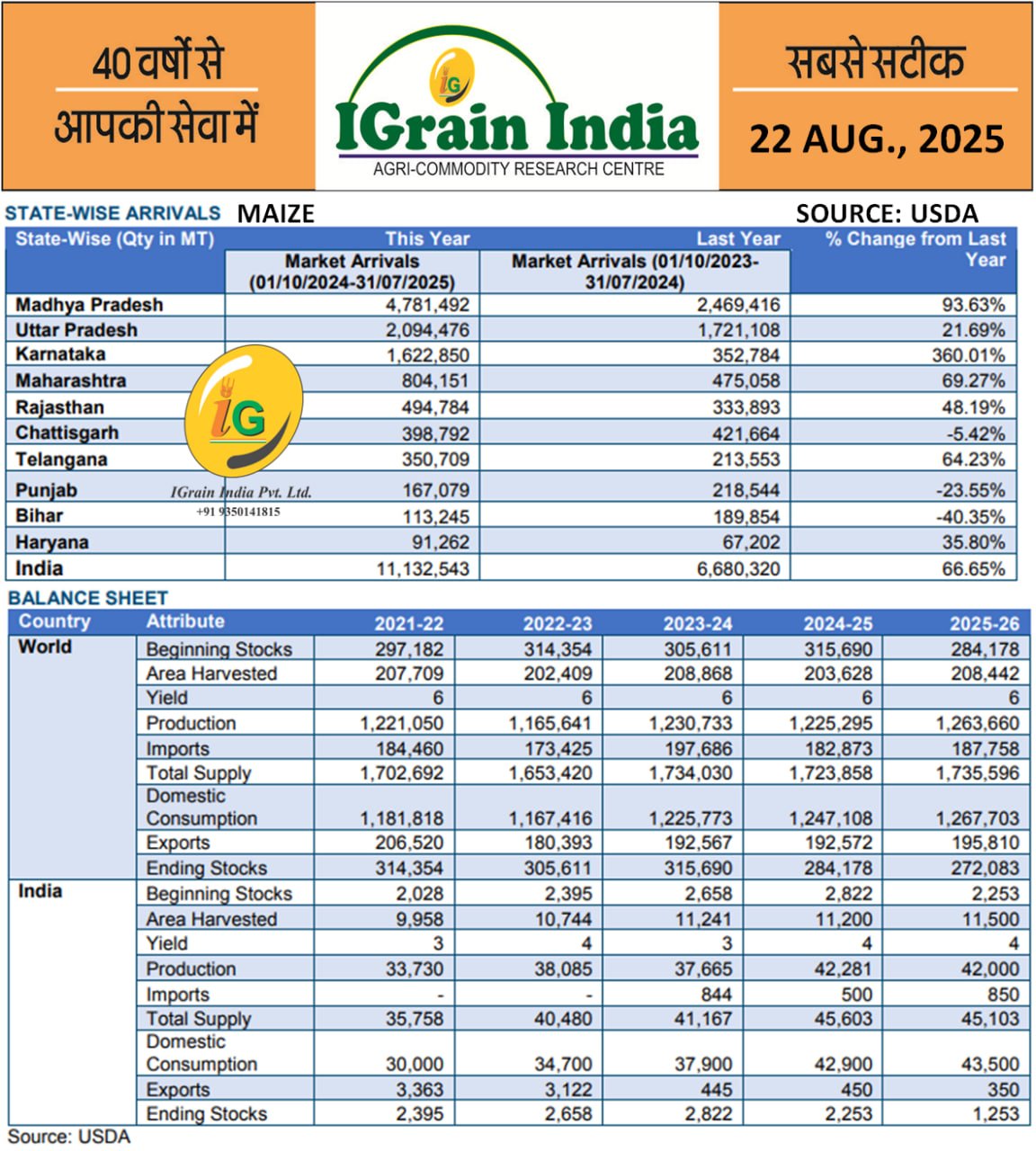 MAIZE BALANCE SHEET AND STATEWISE ARRIVAL