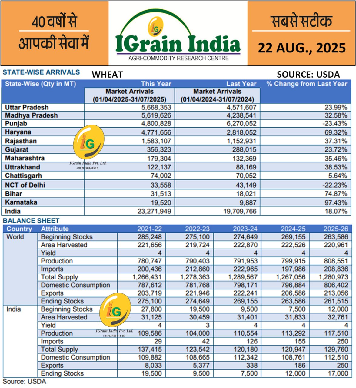 WHEAT BALANCE SHEET AND STATEWISE ARRIVAL
