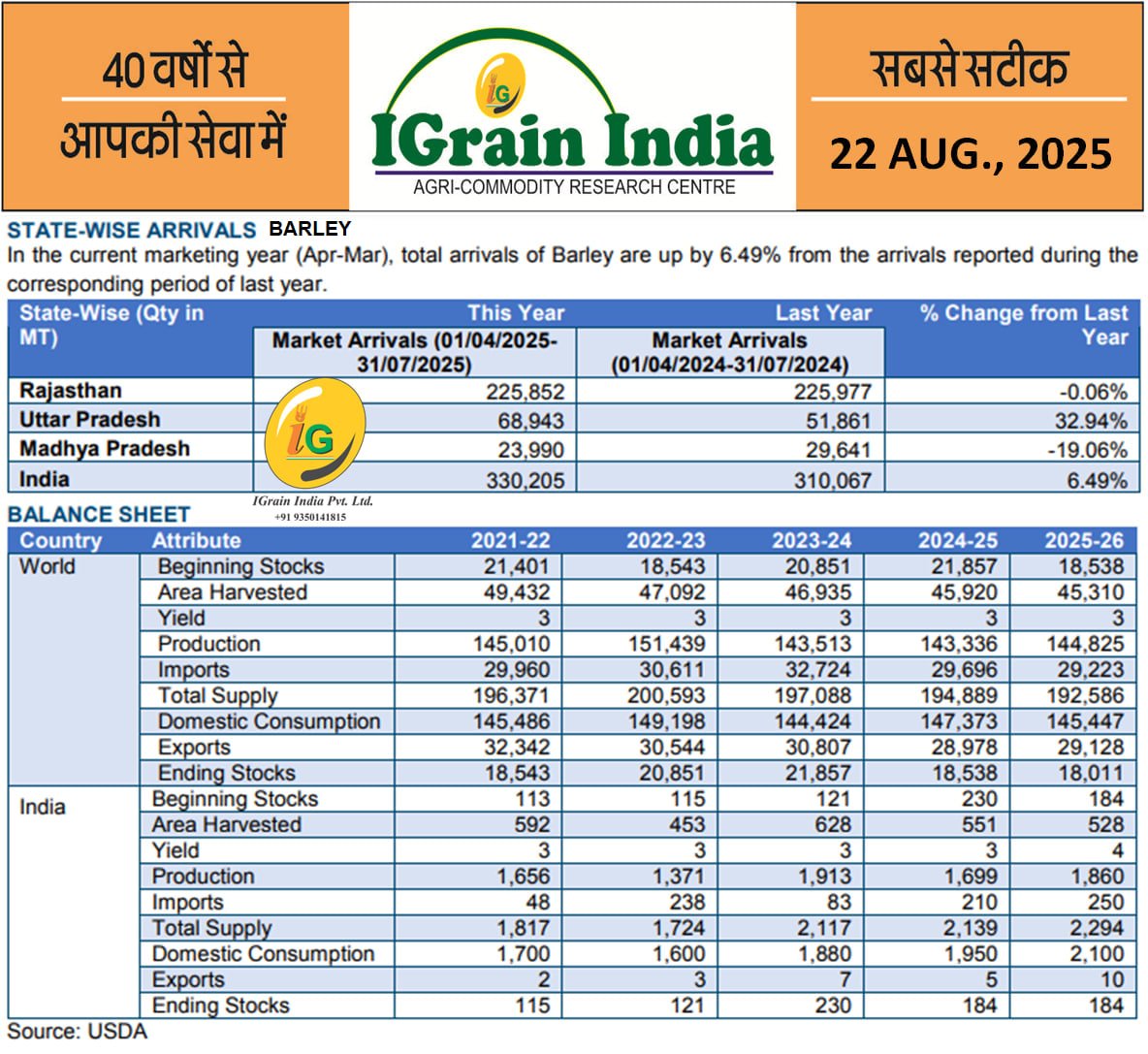 BARLEY BALANCE SHEET AND STATEWISE ARRIVAL