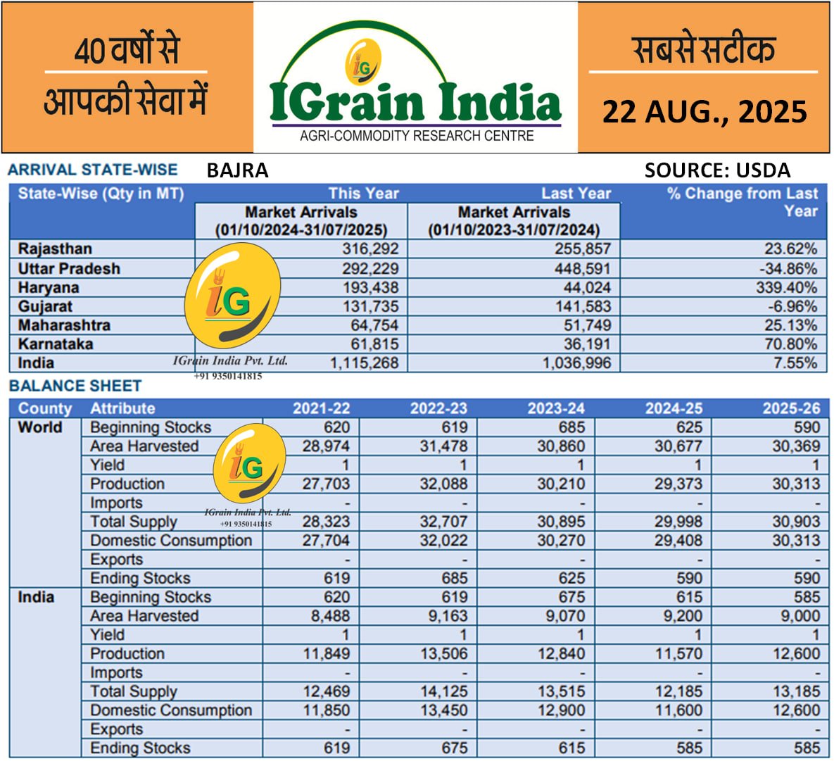 BAJRA BALANCE SHEET AND STATEWISE ARRIVAL