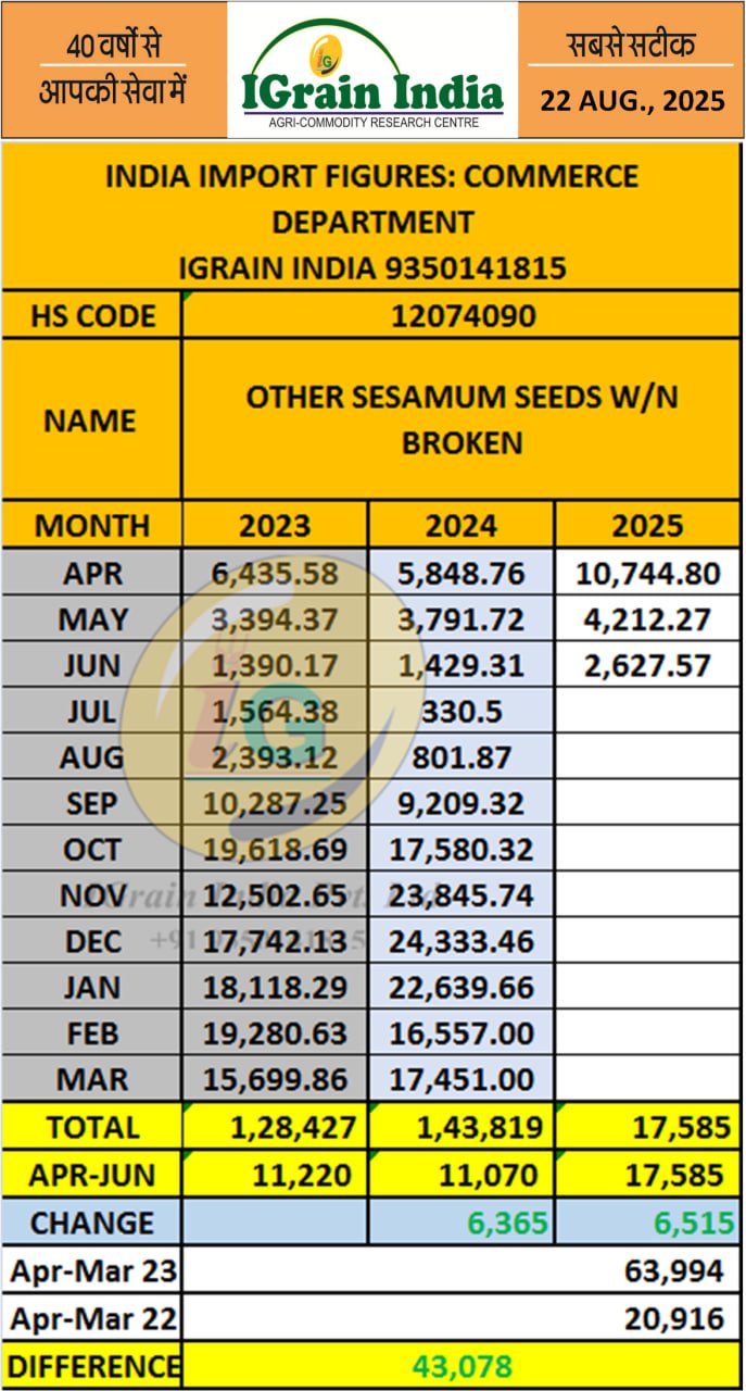 SESAMUM SEED IMPORT DATA