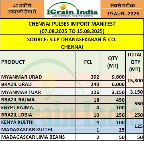 CHENNAI PULSES IMPORT MANIFEST