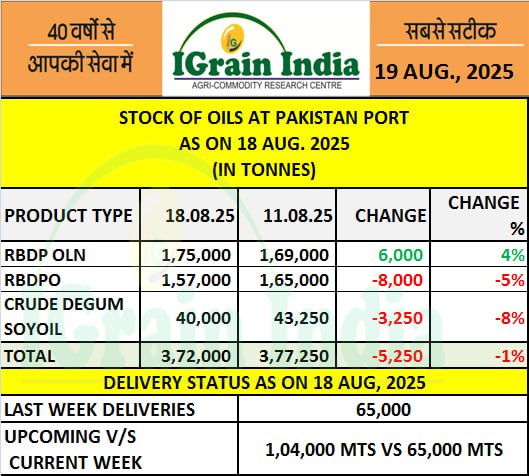 STOCK OF OILS AT PAKISTAN PORT