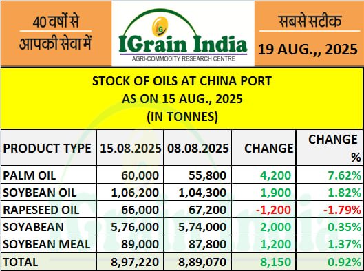 STOCK OF OILS AT CHINA PORT