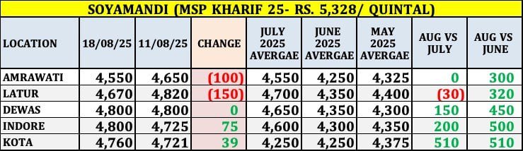 सोयामंडी रिपोर्ट (MSP खरीफ 2025 – ₹5,328 प्रति क्विंटल)