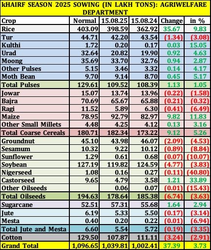 KHARIF SEASON 2025 SOWING (IN LAKH TONS): AGRI-WELFARE DEPARTMENT