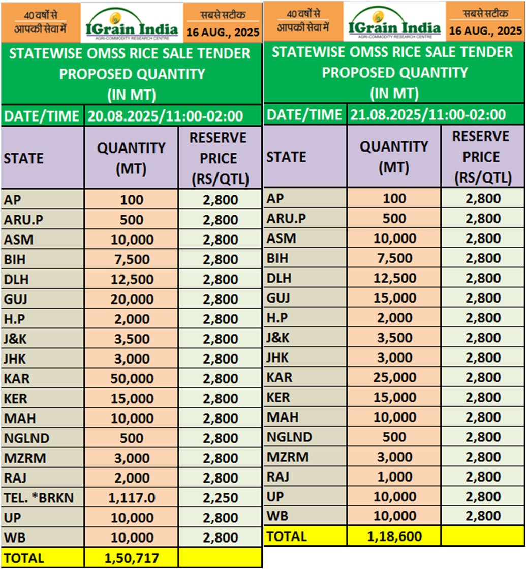 STATEWISE OMSS RICE SALE TENDER PROPOSED QUANTITY