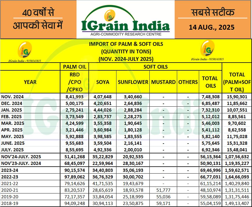 IMPORT OF PALM & SOFT OILS
