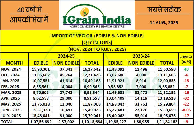IMPORT OF VEG OIL (EDIBLE & NON EDIBLE)