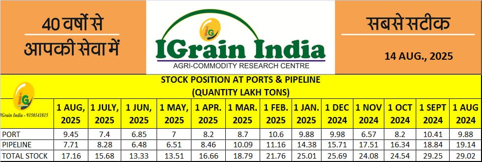 STOCK POSITION AT PORTS & PIPELINE
