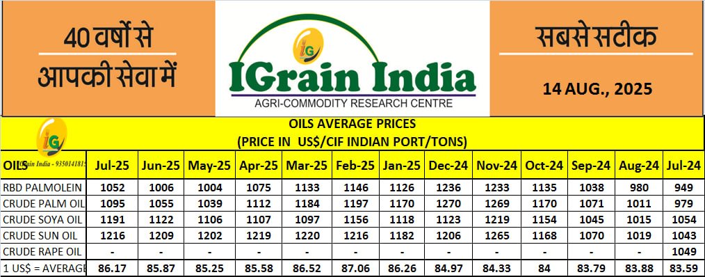 OILS AVERAGE PRICES
