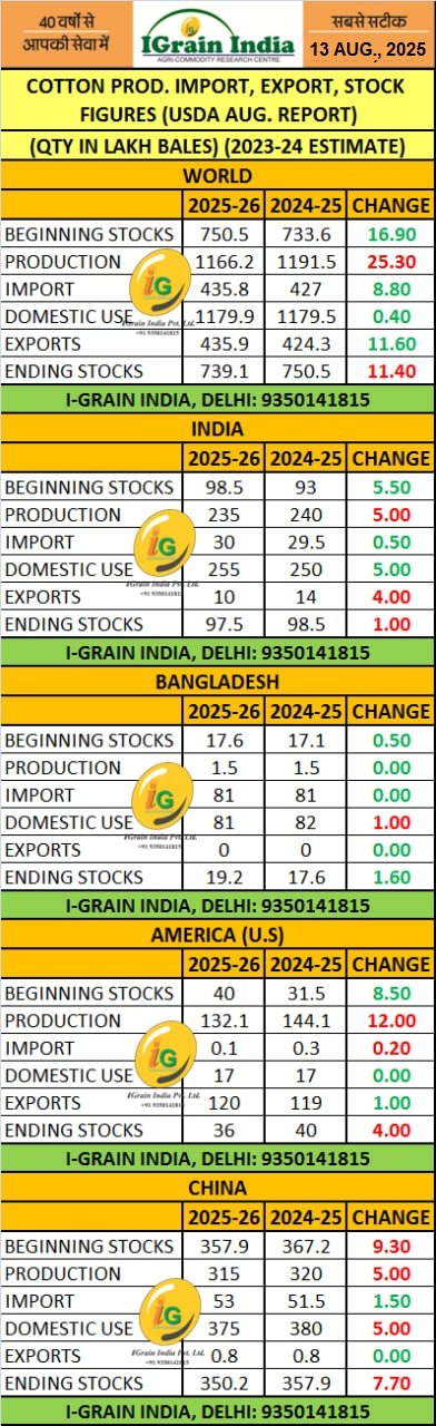 COTTON: USDA AUGUST 2025 REPORT