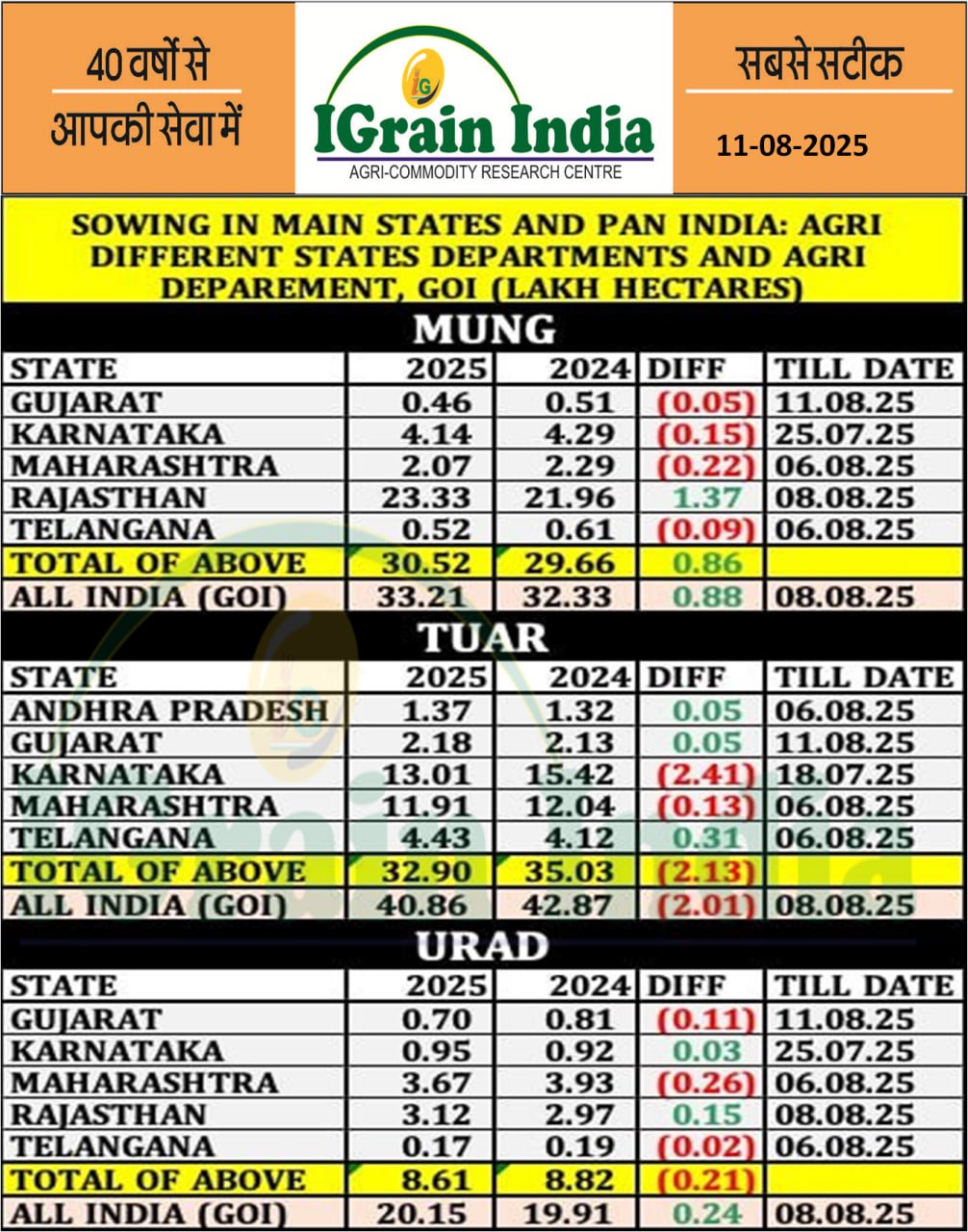 SOWING IN MAIN STATES AND PAN INDIA: AGRI DIFFERENT STATES DEPARTMENTS AND AGRI DEPAREMENT, GOI (LAKH HECTARES)