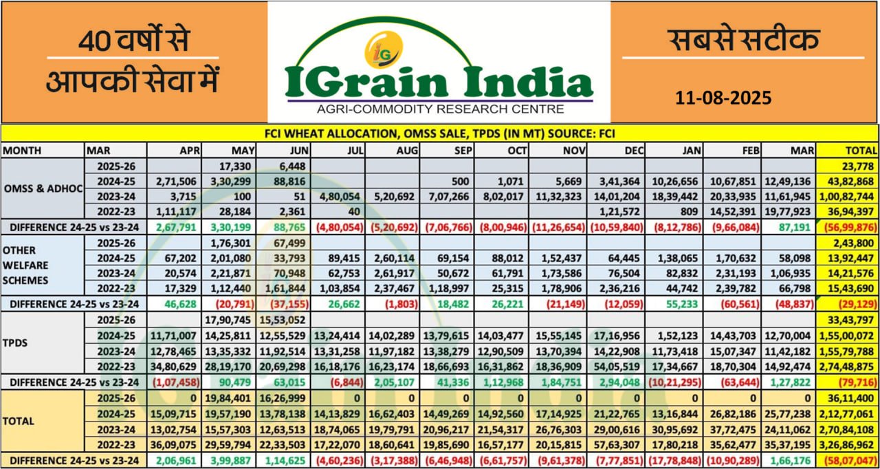 FCI WHEAT ALLOCATION,OMSS SALE TPDS (IN MT SOURCE) FCI