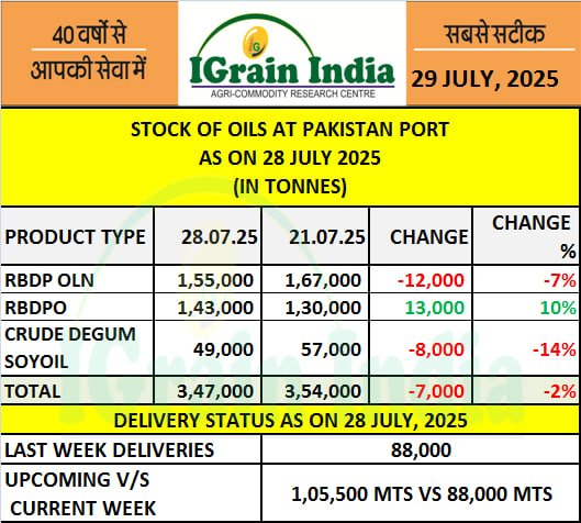STOCK OF OILS AT PAKISTAN PORT