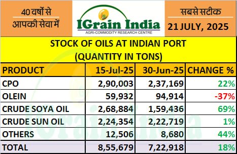 STOCK OF OILS AT INDIAN PORT
