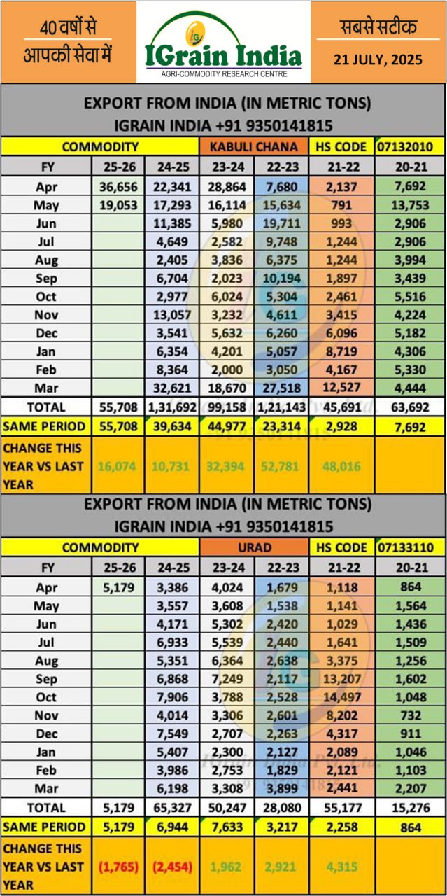 KABULI CHANA & URAD EXPORT DATA