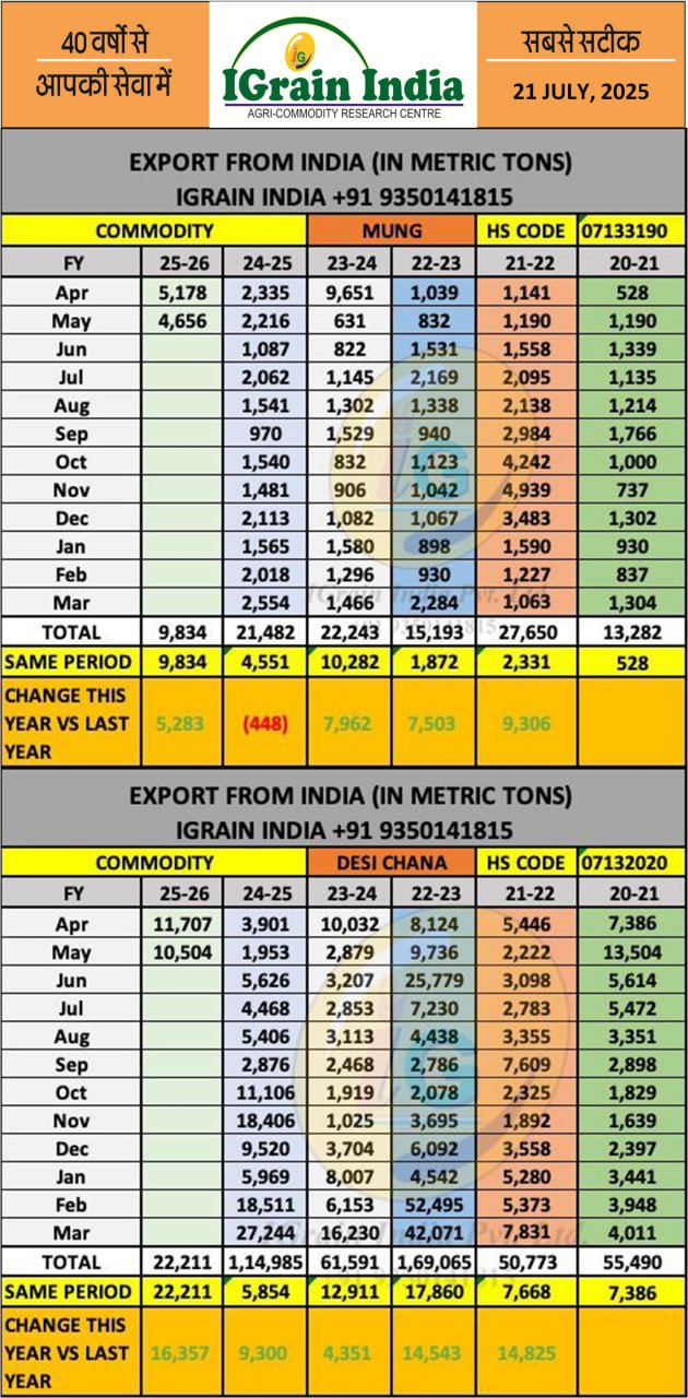 CHANA MUNG EXPORT DATA